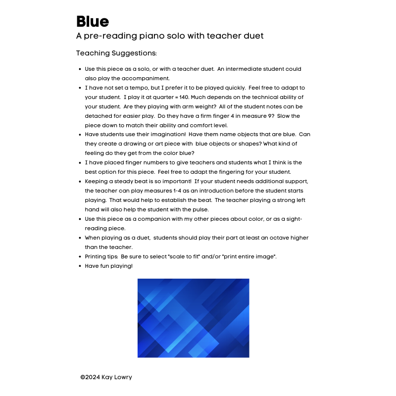 Studio-licensed - print for your students in your studio for as long as you teach!